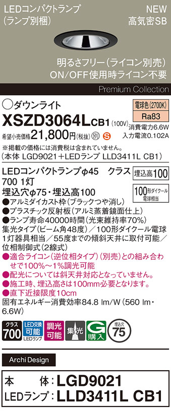 Panasonic ¥À¥¦¥ó¥é¥¤¥È XSZD3064LCB1