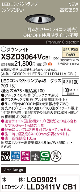 Panasonic ¥À¥¦¥ó¥é¥¤¥È XSZD3064VCB1