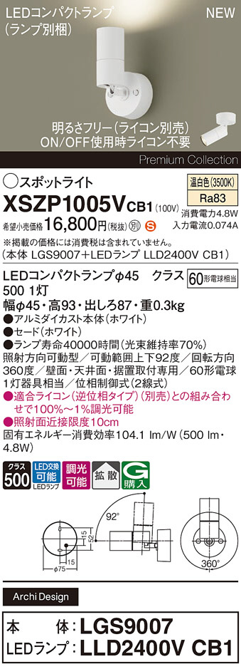 Panasonic ¥¹¥Ý¥Ã¥È¥é¥¤¥È XSZP1005VCB1