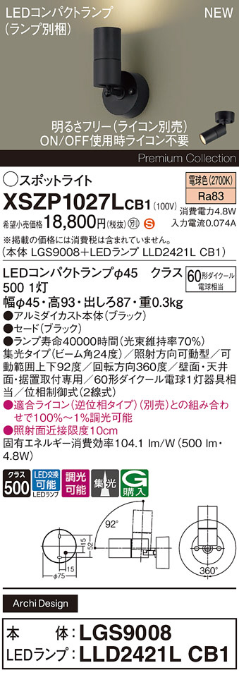 Panasonic ¥¹¥Ý¥Ã¥È¥é¥¤¥È XSZP1027LCB1