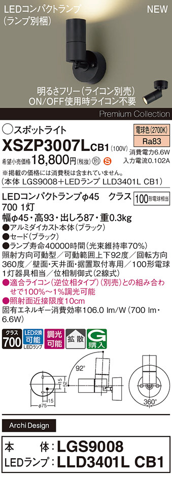 Panasonic ¥¹¥Ý¥Ã¥È¥é¥¤¥È XSZP3007LCB1