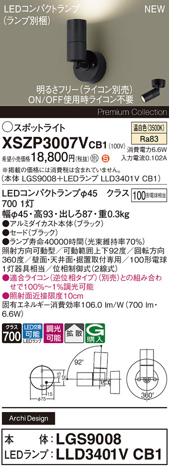 Panasonic ¥¹¥Ý¥Ã¥È¥é¥¤¥È XSZP3007VCB1