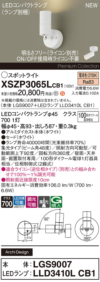 Panasonic ¥¹¥Ý¥Ã¥È¥é¥¤¥È XSZP3065LCB1