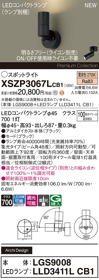 Panasonic ¥¹¥Ý¥Ã¥È¥é¥¤¥È XSZP3067LCB1