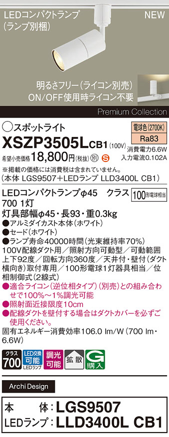Panasonic ¥¹¥Ý¥Ã¥È¥é¥¤¥È XSZP3505LCB1