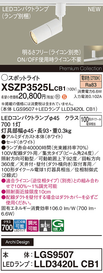 Panasonic ¥¹¥Ý¥Ã¥È¥é¥¤¥È XSZP3525LCB1