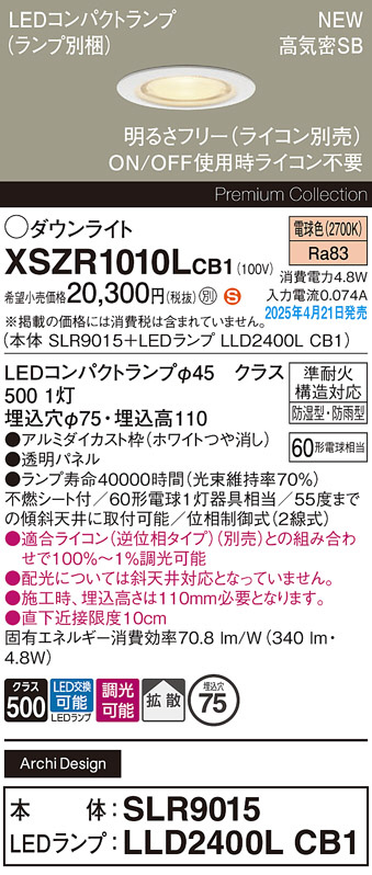 Panasonic ¥¨¥¯¥¹¥Æ¥ê¥¢¥À¥¦¥ó¥é¥¤¥È XSZR1010LCB1