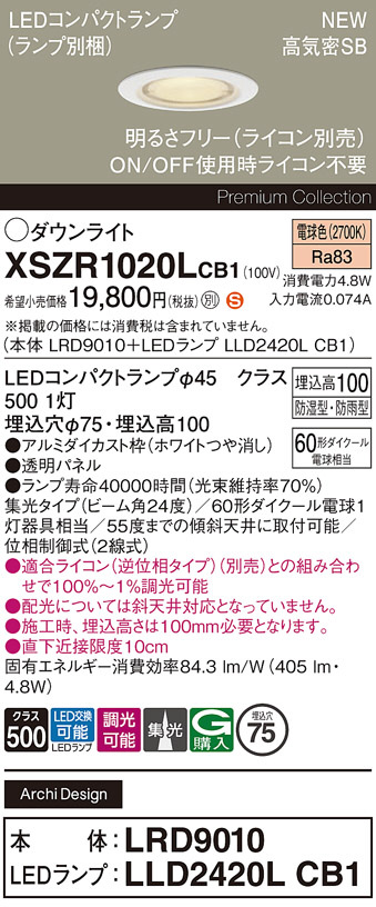 Panasonic ¥¨¥¯¥¹¥Æ¥ê¥¢¥À¥¦¥ó¥é¥¤¥È XSZR1020LCB1