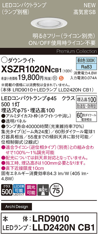 Panasonic ¥¨¥¯¥¹¥Æ¥ê¥¢¥À¥¦¥ó¥é¥¤¥È XSZR1020NCB1