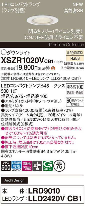 Panasonic ¥¨¥¯¥¹¥Æ¥ê¥¢¥À¥¦¥ó¥é¥¤¥È XSZR1020VCB1
