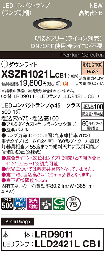 Panasonic ¥¨¥¯¥¹¥Æ¥ê¥¢¥À¥¦¥ó¥é¥¤¥È XSZR1021LCB1