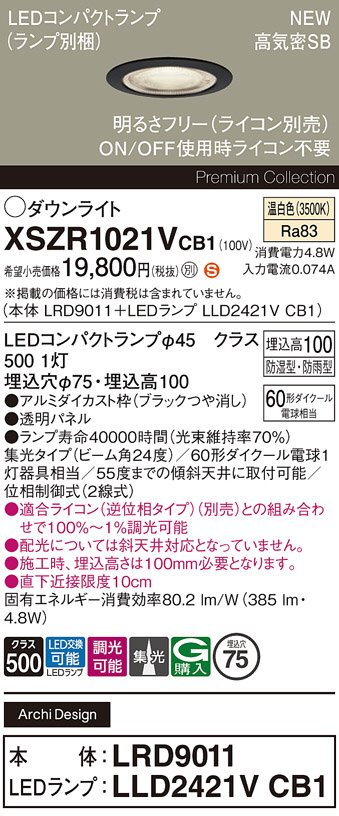 Panasonic ¥¨¥¯¥¹¥Æ¥ê¥¢¥À¥¦¥ó¥é¥¤¥È XSZR1021VCB1