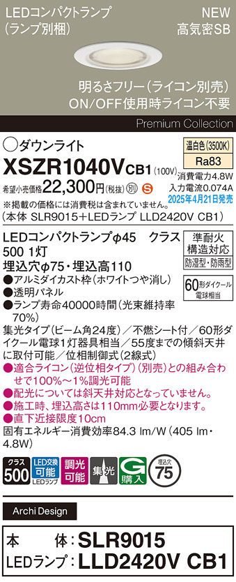 Panasonic ¥¨¥¯¥¹¥Æ¥ê¥¢¥À¥¦¥ó¥é¥¤¥È XSZR1040VCB1