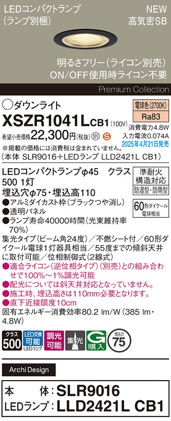 Panasonic ¥¨¥¯¥¹¥Æ¥ê¥¢¥À¥¦¥ó¥é¥¤¥È XSZR1041LCB1
