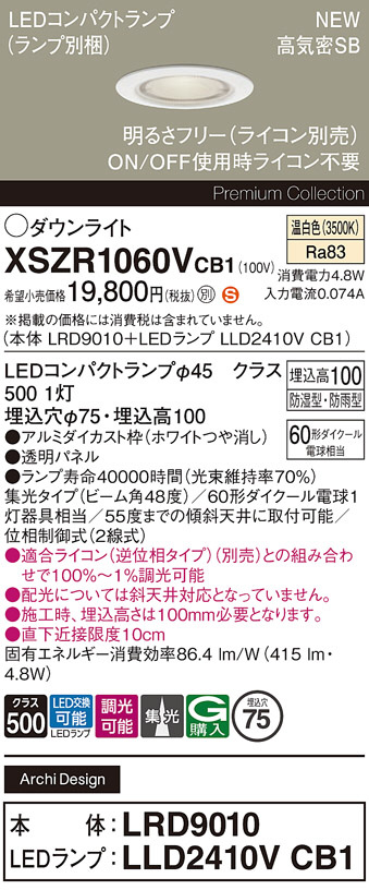 Panasonic ¥¨¥¯¥¹¥Æ¥ê¥¢¥À¥¦¥ó¥é¥¤¥È XSZR1060VCB1
