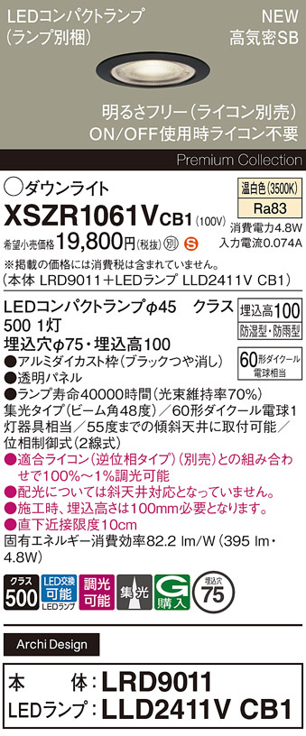 Panasonic ¥¨¥¯¥¹¥Æ¥ê¥¢¥À¥¦¥ó¥é¥¤¥È XSZR1061VCB1