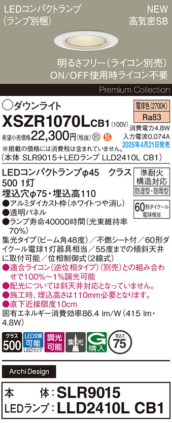 Panasonic ¥¨¥¯¥¹¥Æ¥ê¥¢¥À¥¦¥ó¥é¥¤¥È XSZR1070LCB1