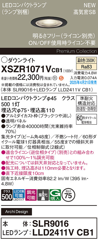 Panasonic ¥¨¥¯¥¹¥Æ¥ê¥¢¥À¥¦¥ó¥é¥¤¥È XSZR1071VCB1