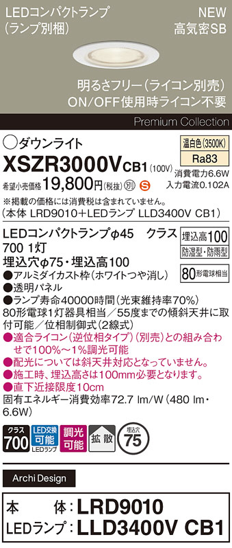 Panasonic ¥¨¥¯¥¹¥Æ¥ê¥¢¥À¥¦¥ó¥é¥¤¥È XSZR3000VCB1