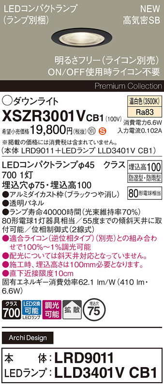Panasonic ¥¨¥¯¥¹¥Æ¥ê¥¢¥À¥¦¥ó¥é¥¤¥È XSZR3001VCB1