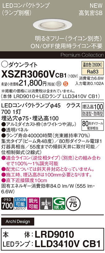 Panasonic ¥¨¥¯¥¹¥Æ¥ê¥¢¥À¥¦¥ó¥é¥¤¥È XSZR3060VCB1