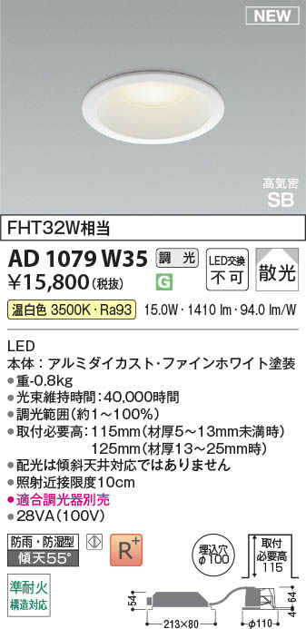 Koizumi ¥³¥¤¥º¥ß¾ÈÌÀ LED¹âµ¤Ì©SB¥À¥¦¥ó¥é¥¤¥È AD1079W35