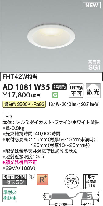 Koizumi ¥³¥¤¥º¥ß¾ÈÌÀ LED¹âµ¤Ì©SG1¥À¥¦¥ó¥é¥¤¥È AD1081W35