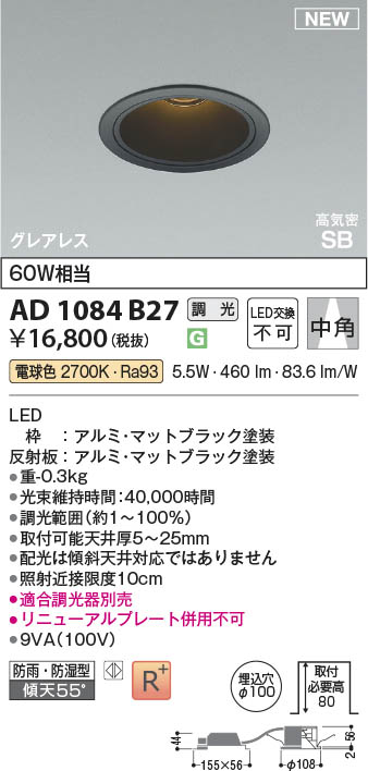 Koizumi ¥³¥¤¥º¥ß¾ÈÌÀ LED¹âµ¤Ì©SB¥À¥¦¥ó¥é¥¤¥È AD1084B27