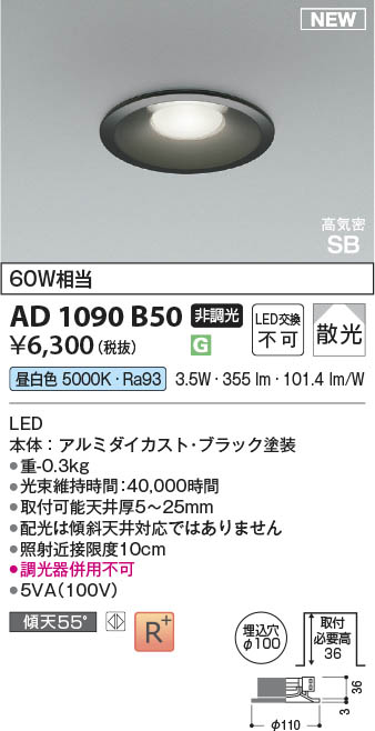 Koizumi ¥³¥¤¥º¥ß¾ÈÌÀ LED¹âµ¤Ì©SB¥À¥¦¥ó¥é¥¤¥È AD1090B50