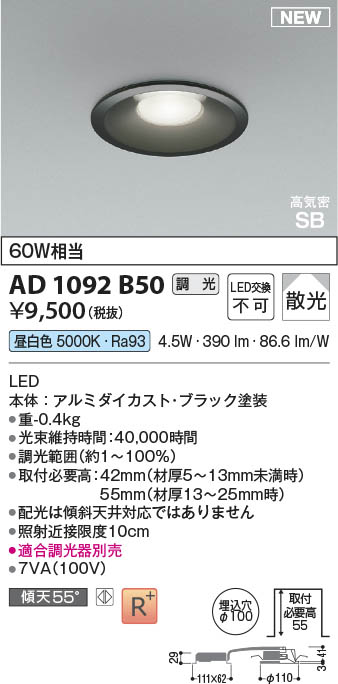 Koizumi ¥³¥¤¥º¥ß¾ÈÌÀ LED¹âµ¤Ì©SB¥À¥¦¥ó¥é¥¤¥È AD1092B50