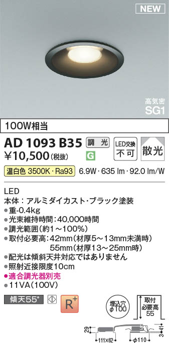 Koizumi ¥³¥¤¥º¥ß¾ÈÌÀ LED¹âµ¤Ì©SG1¥À¥¦¥ó¥é¥¤¥È AD1093B35