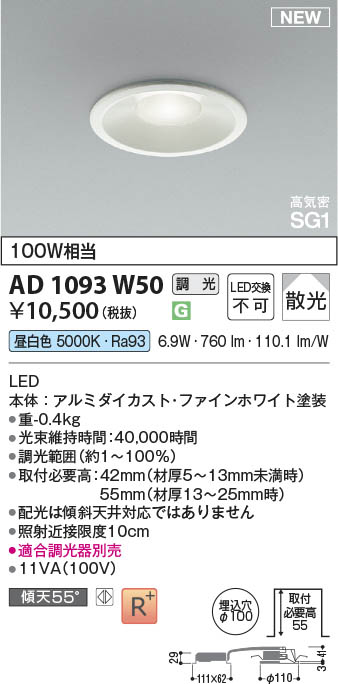 Koizumi ¥³¥¤¥º¥ß¾ÈÌÀ LED¹âµ¤Ì©SG1¥À¥¦¥ó¥é¥¤¥È AD1093W50