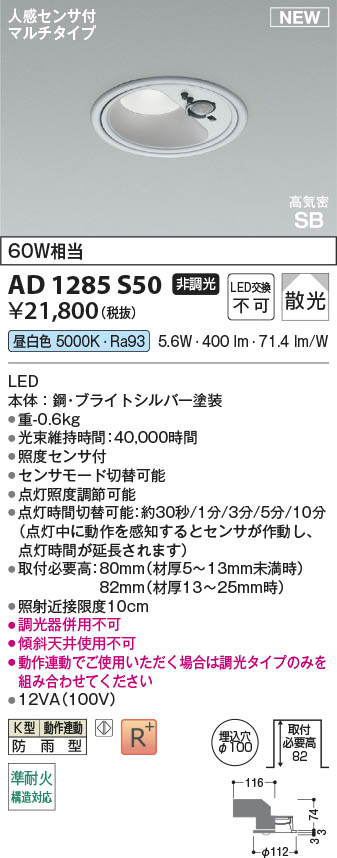 Koizumi ¥³¥¤¥º¥ß¾ÈÌÀ LED¹âµ¤Ì©SB¥À¥¦¥ó¥é¥¤¥È AD1285S50