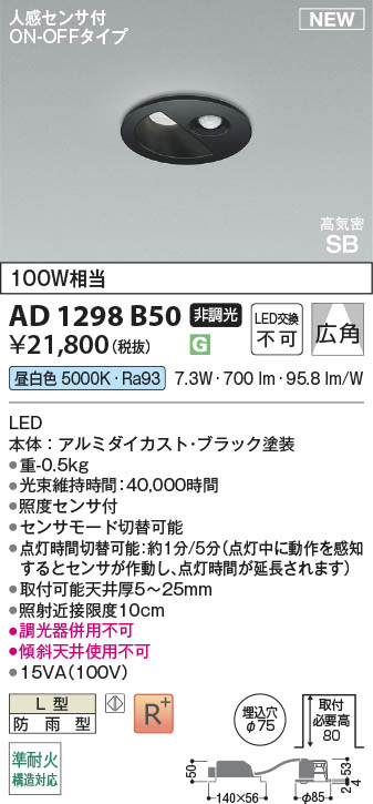 Koizumi ¥³¥¤¥º¥ß¾ÈÌÀ LED¹âµ¤Ì©SB¥À¥¦¥ó¥é¥¤¥È AD1298B50