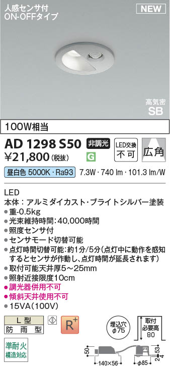 Koizumi ¥³¥¤¥º¥ß¾ÈÌÀ LED¹âµ¤Ì©SB¥À¥¦¥ó¥é¥¤¥È AD1298S50