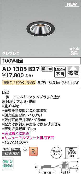 Koizumi ¥³¥¤¥º¥ß¾ÈÌÀ LED¹âµ¤Ì©SB¥À¥¦¥ó¥é¥¤¥È AD1305B27