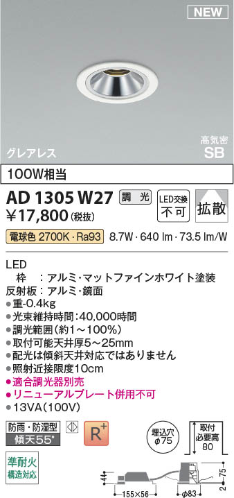 Koizumi ¥³¥¤¥º¥ß¾ÈÌÀ LED¹âµ¤Ì©SB¥À¥¦¥ó¥é¥¤¥È AD1305W27