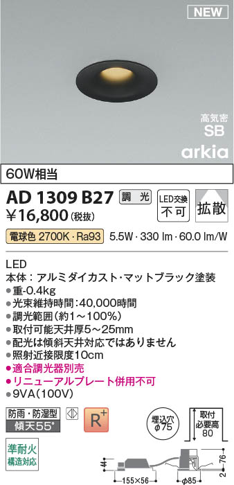 Koizumi ¥³¥¤¥º¥ß¾ÈÌÀ LED¹âµ¤Ì©SB¥À¥¦¥ó¥é¥¤¥È AD1309B27