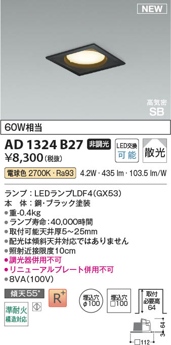 Koizumi ¥³¥¤¥º¥ß¾ÈÌÀ LED¹âµ¤Ì©SB¥À¥¦¥ó¥é¥¤¥È AD1324B27