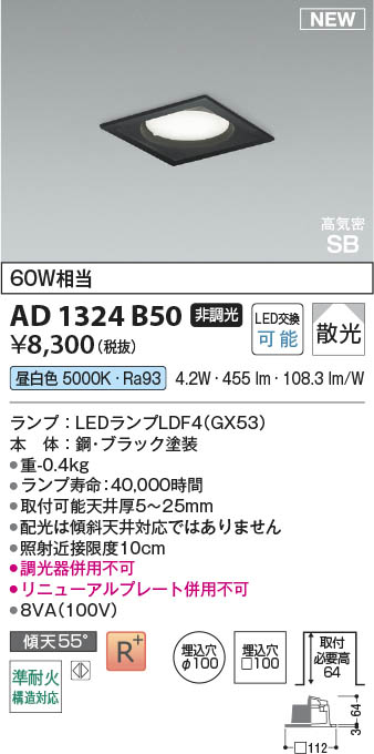 Koizumi ¥³¥¤¥º¥ß¾ÈÌÀ LED¹âµ¤Ì©SB¥À¥¦¥ó¥é¥¤¥È AD1324B50