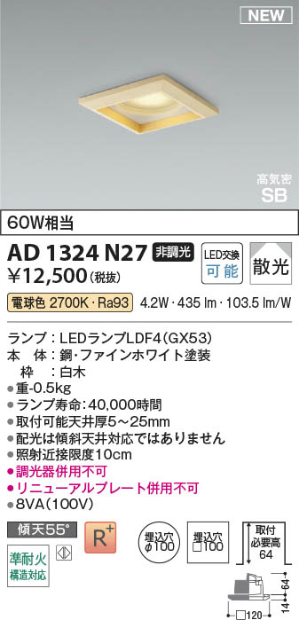Koizumi ¥³¥¤¥º¥ß¾ÈÌÀ LED¹âµ¤Ì©SB¥À¥¦¥ó¥é¥¤¥È AD1324N27