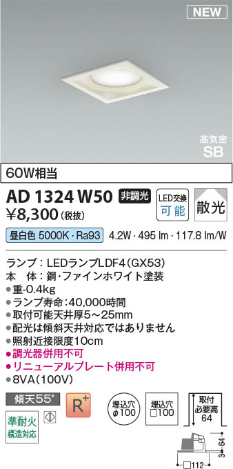 Koizumi ¥³¥¤¥º¥ß¾ÈÌÀ LED¹âµ¤Ì©SB¥À¥¦¥ó¥é¥¤¥È AD1324W50