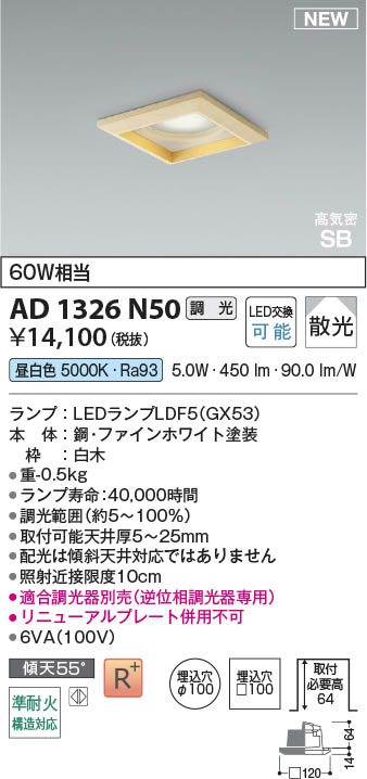 Koizumi ¥³¥¤¥º¥ß¾ÈÌÀ LED¹âµ¤Ì©SB¥À¥¦¥ó¥é¥¤¥È AD1326N50