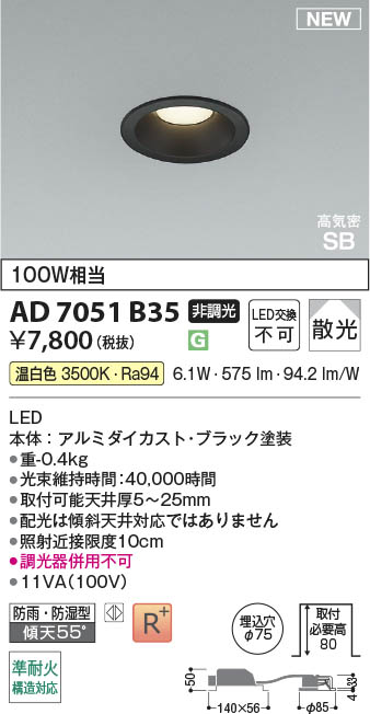 Koizumi ¥³¥¤¥º¥ß¾ÈÌÀ LED¹âµ¤Ì©SB¥À¥¦¥ó¥é¥¤¥È AD7051B35