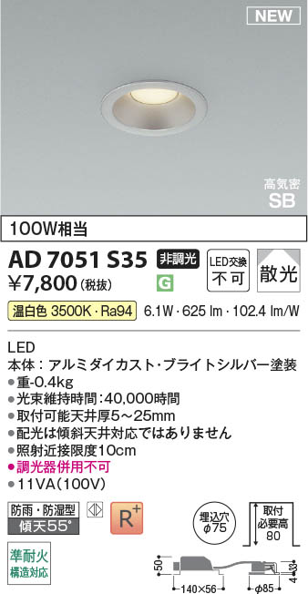 Koizumi ¥³¥¤¥º¥ß¾ÈÌÀ LED¹âµ¤Ì©SB¥À¥¦¥ó¥é¥¤¥È AD7051S35