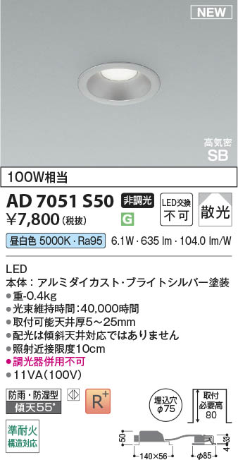 Koizumi ¥³¥¤¥º¥ß¾ÈÌÀ LED¹âµ¤Ì©SB¥À¥¦¥ó¥é¥¤¥È AD7051S50