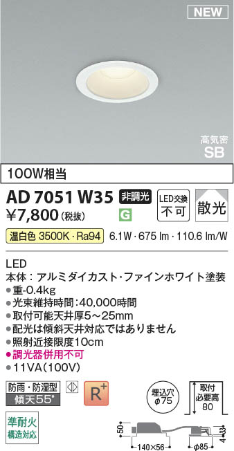 Koizumi ¥³¥¤¥º¥ß¾ÈÌÀ LED¹âµ¤Ì©SB¥À¥¦¥ó¥é¥¤¥È AD7051W35