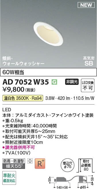 Koizumi ¥³¥¤¥º¥ß¾ÈÌÀ LED¹âµ¤Ì©SB¥À¥¦¥ó¥é¥¤¥È AD7052W35