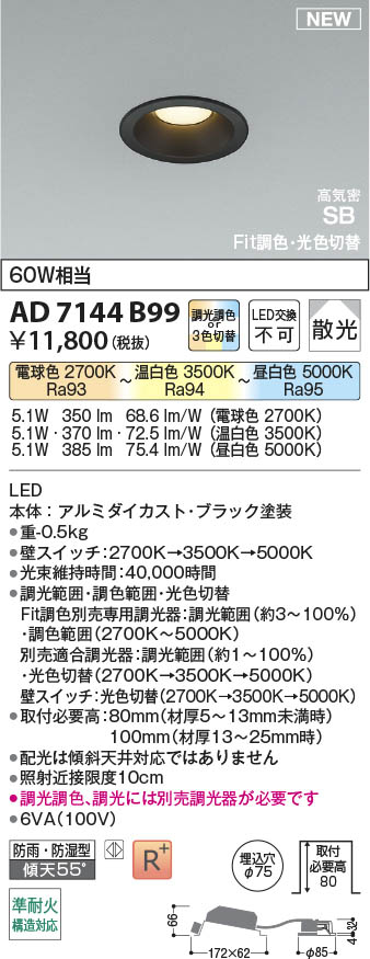 Koizumi ¥³¥¤¥º¥ß¾ÈÌÀ LED¹âµ¤Ì©SB¥À¥¦¥ó¥é¥¤¥È AD7144B99