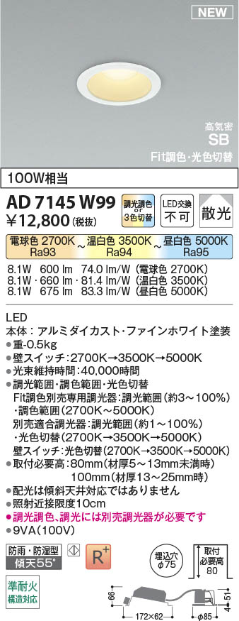 Koizumi ¥³¥¤¥º¥ß¾ÈÌÀ LED¹âµ¤Ì©SB¥À¥¦¥ó¥é¥¤¥È AD7145W99